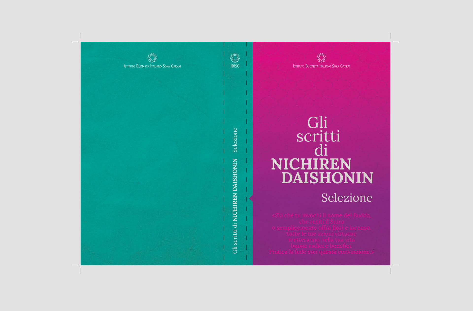 Raccolta di 45 scritti (Gosho) di Nichiren Daishonin. Progetto grafico e realizzazione. Stampa: copertina flessibile 4 colori; interno 2 colori.